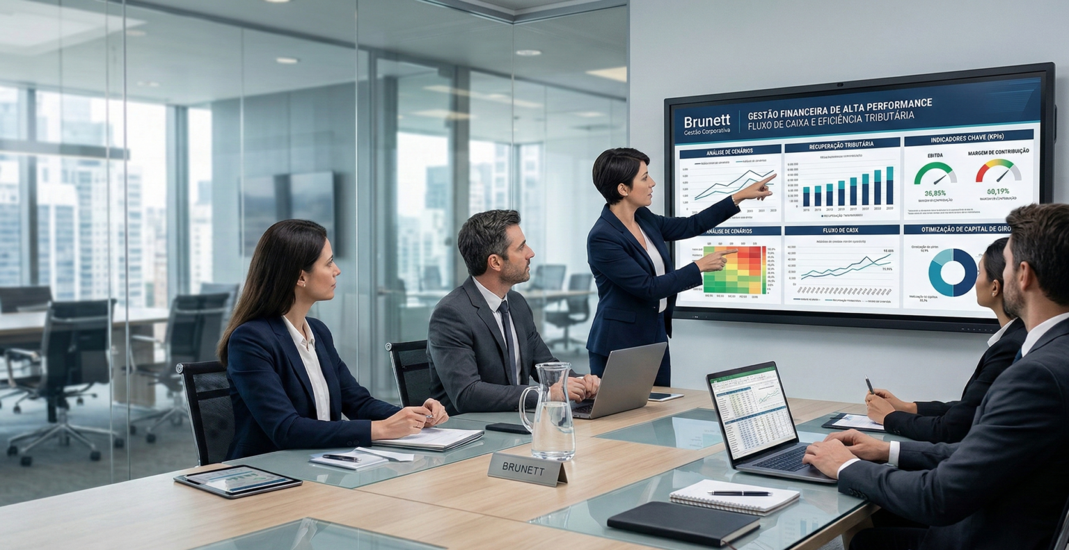 Muitas empresas de alta performance morrem não por falta de vendas, mas por falta de liquidez. Na Brunett Gestão Corporativa, entendemos que o lucro é uma métrica de vaidade se não for acompanhado por uma gestão de caixa rigorosa e uma eficiência tributária impecável.
